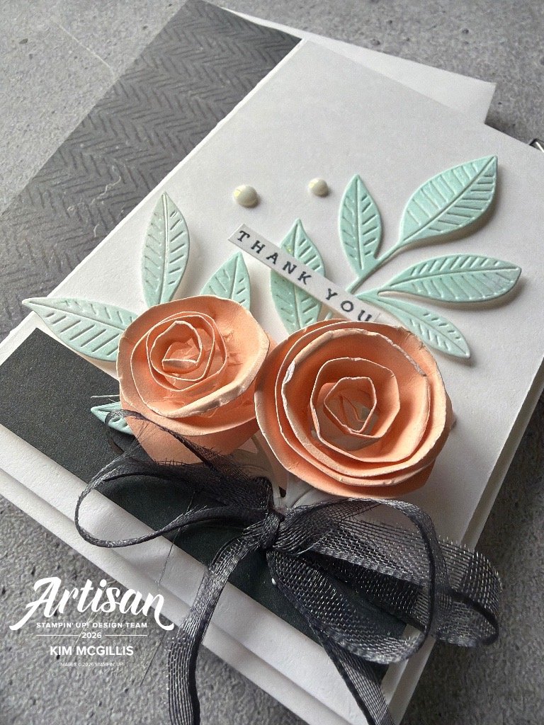 I really wanted to focus on layering and subtle texture for these cards. To add a handmade, dimensional element, I created delicate roses using two-tone cardstock and the 2 3/8” circle punch. It’s such a simple technique, but it adds so much interest and softness to the overall design.