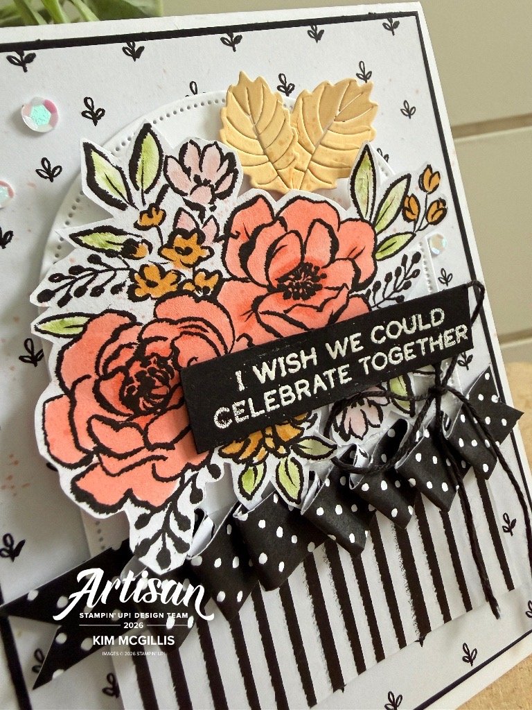 For this project, I used some of the new 2026–2028 In Colors, and they work beautifully for creating soft, eye-catching ruched effects!  I also used the Artisan Sketch Garden Designer Series Paper and the Words and Wishes Bundle that will be available in May to customers and that is available to demonstrators with the preorder now.