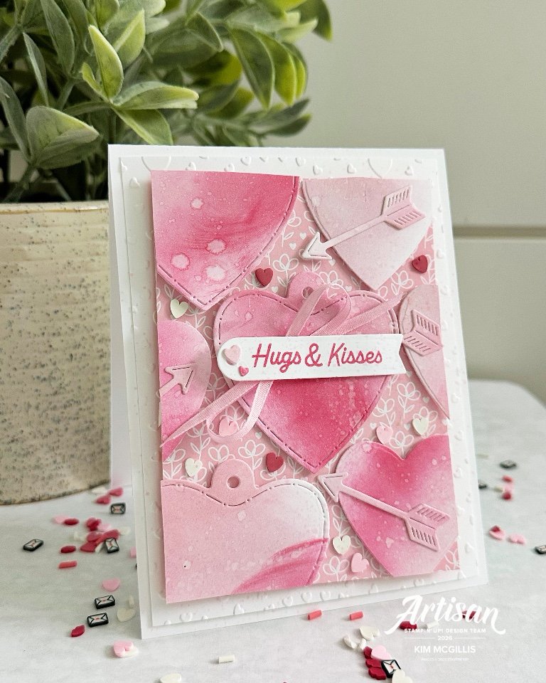 The new Hearts of Love Embossing Folder adds so much texture to the card. But my ultimate favorite are the cute Loose Valentine Assortments. They include mini letters. I bet they sell out…