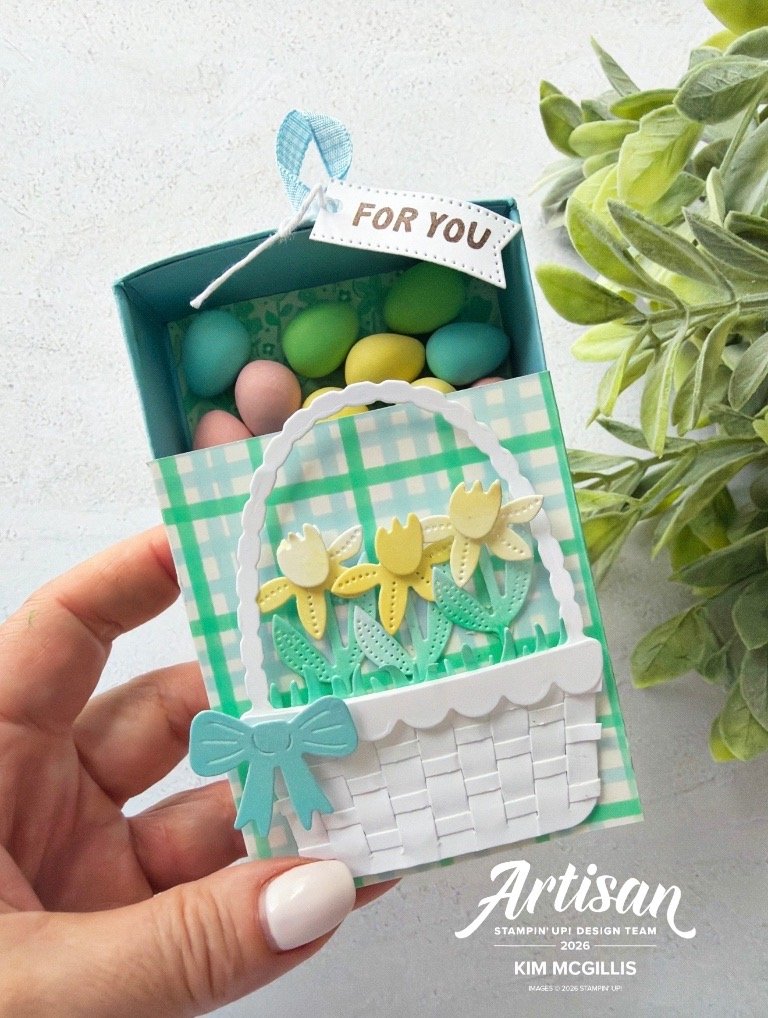 To decorate the front, I used the coordinating dies from the Easter Joy Suite Collection to create the sweetest little basket detail — it layers beautifully and adds so much charm and dimension.