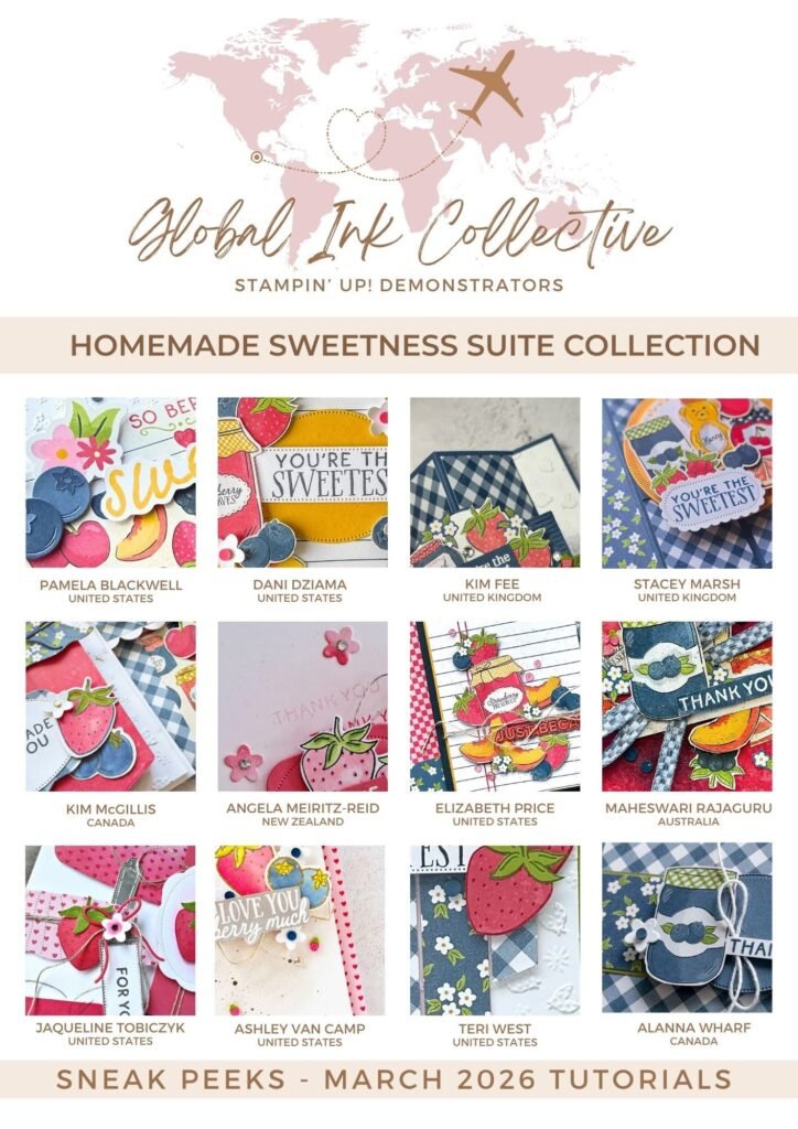 It’s time for our Global Ink Collective March Tutorial! I have a fun selection for you this month featuring the Homemade Sweetness Suite Collection from the Online Exclusives that will be available to customers on March 3rd. Our March 2026 tutorial bundle is packed with berries and florals, exclusive projects — including cards, scrapbook pages, fun folds and more!